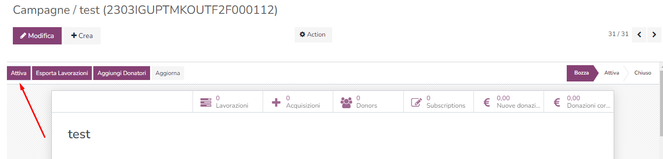 Per attivare la campagna clicca su ATTIVA in alto a sinistra