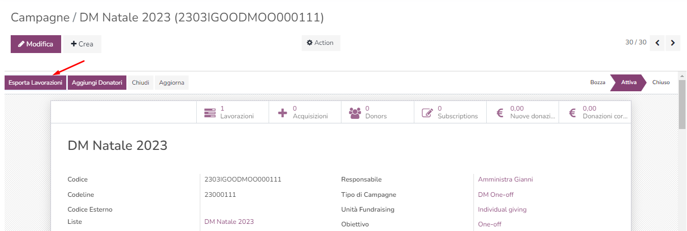 Quando attiverai la campagna si creeranno le lavorazioni, una per ogni anagrafica che hai coinvolto.
