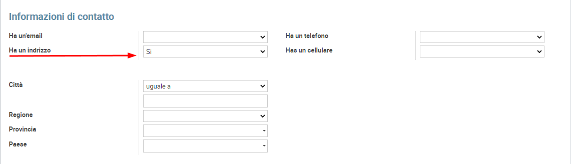 Per prima cosa creiamo la prima condizione per questo segmento: identifichiamo solo le anagrafiche che corrispondono a donatori con indirizzo fisico.