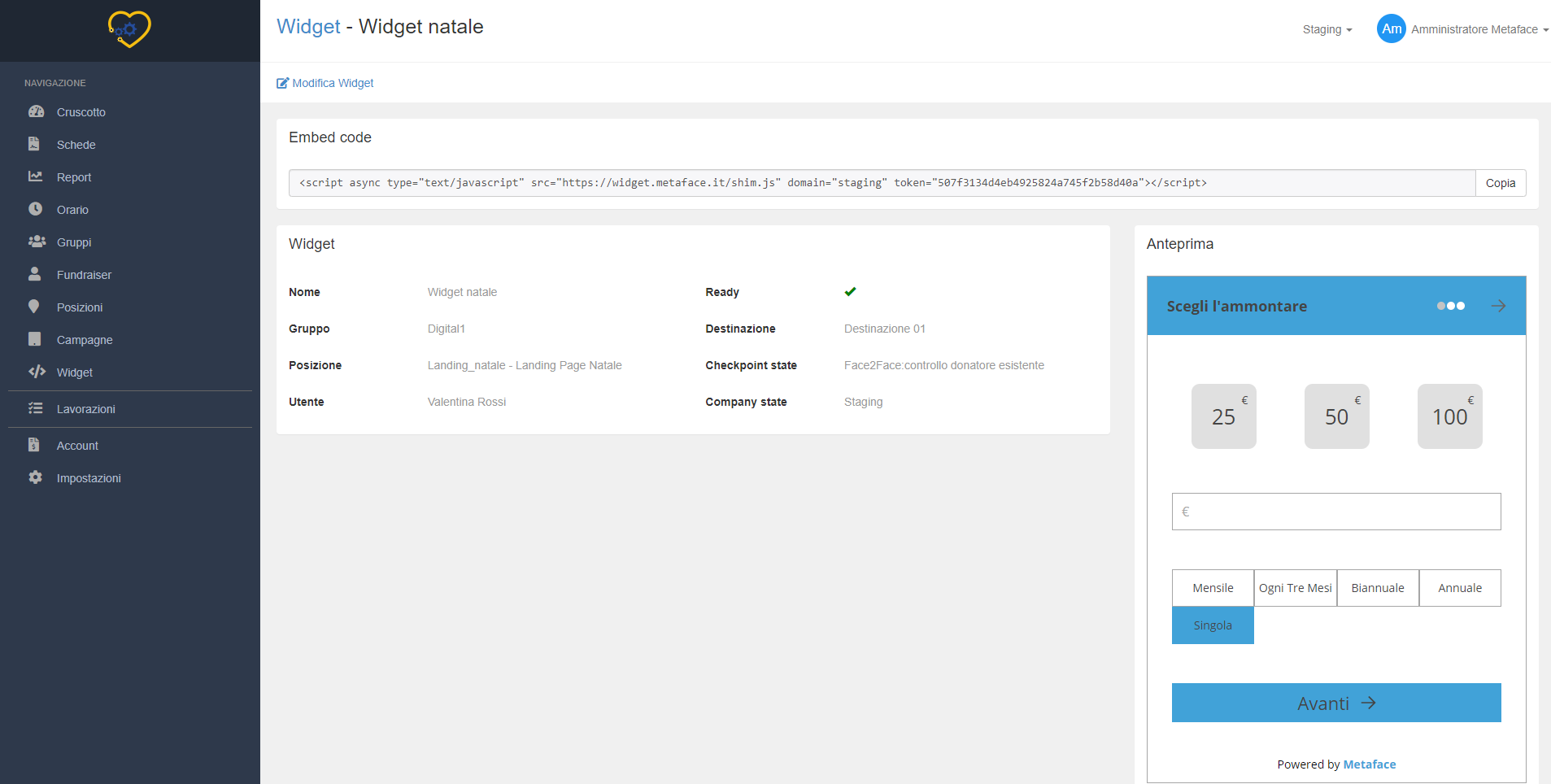 - STAFF: assegnate un utente responsabile per il widget